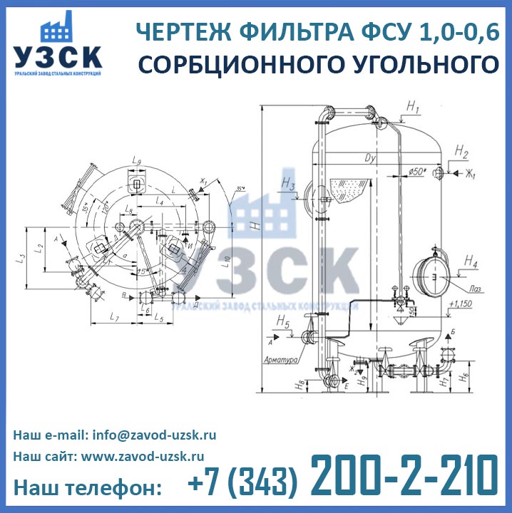 Наш завод (Уральский завод стальных конструкций) является производителем угольных фильтров, сам осуществляет изготовление и реализацию выпускаемой продукции. Приобретая фильтры ФСУ-1.0-0.6 в Смоленске от производителя, Вы приобретаете оборудование без наценок всевозможных посредников, а также значительно экономите свое время. Фильтры ФСУ1.0-0.6 завода УЗСК – это гарантия качества, кратчайшие сроки изготовления и цена, которая Вам понравится.